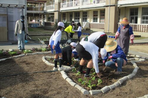 ひだまりの会の方が来られ、花壇の花植えを一緒に行いました。 環境委員の児童が考えた設計を基に、キンセンカなど、冬用の花を配置を考えて植えていきました。 これから環境委員児童を中心にお世話をして、きれいに咲かせていきます!