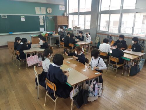 2年生の教室をのぞいてみると、「百人一首」をしていました。 生活科の学習の「昔の遊び」の中で、「百人一首」を体験したようで時間を見つけては今もしているようです。 教室に入ると、みんな楽しそうに百人一首をしていました。驚いたのは、上の句を読む…