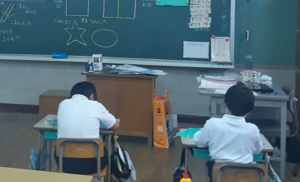 2年生は図画工作科の時間にカッターを使って、工作を行いました。
